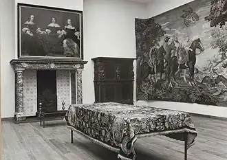 When the number of lepers declined at the end of the 17th century, people with other conditions were also admitted. In 1759, proveniers were again admitted to the guest house. After the Poor Law of 1854, the municipality did not want to be responsible for the proveniers and the house closed in 1860. Because two residents were obstructive, it took until 1866 before the estate could be liquidated. The buildings were subsequently demolished. Various parts of the inventory, including this painting and the mantelpiece, were loaned by the municipality of Amsterdam in 1885 to the Rijksmuseum, which opened that year.[4]