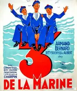 Three Sailors (French: Trois de la marine) is a 1934 French comedy film directed by Charles Barrois and starring Armand Bernard, Betty Stockfeld and Henri Alibert.[1] It was remade in 1957.