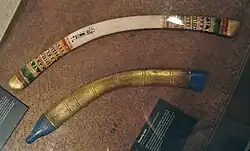 Throwing sticks found in the tomb of Tutankhamun. The one on top is made of ivory while the one on the bottom is made of gold and would have been used in ceremonial practices.