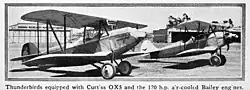An OX-5 powered Thunderbird alongside a Bailey C-7-R powered aircraft