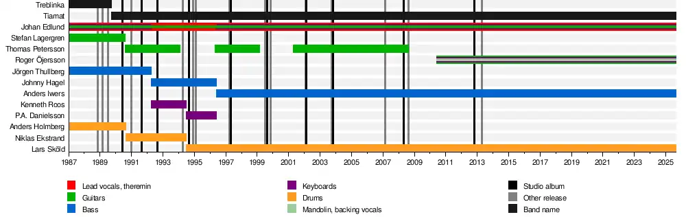 Tiamat is a Swedish metal band that formed in Stockholm in 1987 and led by Johan Edlund. The band went through a number of stylistic changes in their earlier releases before settling on gothic metal.