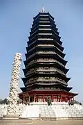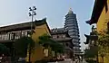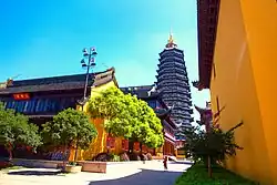 The Tianning Temple (simplified Chinese: 天宁寺; traditional Chinese: 天寧寺; pinyin: Tiānníng Sì; Wu: Thieninzy), is a Buddhist temple located in Changzhou City, Jiangsu Province, China, is noted for its giant pagoda, the Tianning Pagoda (天宁宝塔/天寧宝塔). Construction began in April 2002 with the opening ceremony for the completed structure held on April 30, 2007, where a crowd of hundreds of Buddhist monks gathered for the ceremony.[1][2] With 13 stories and a height of 153.79 metres (505 ft), this is now the tallest pagoda in the world,[1][2][3] taller than China's tallest existent pre-modern Buddhist pagoda, the Liaodi Pagoda built in 1055 at a height of 84 m (275 ft). Although the existing pagoda was built by April 2007, the temple grounds and the pagoda have a history of construction and destruction for the past 1,350 years, since the time of the Tang dynasty (618–907).[1][2][3] Building of the pagoda was proposed by the Buddhist Association of China in 2001, yet providing money donations for the temple was an international effort, as leaders of 108 Buddhist associations and temples worldwide attended the opening ceremony at the temple.[3]