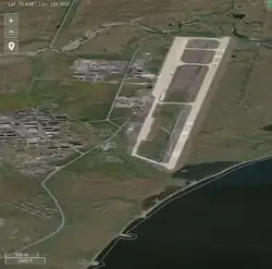 Tiksi Aerodrome (IATA: IKS, ICAO: UEST) is located 1 km (0.6 mi) northeast of Tiksi, Russia, and was built in the 1950s as a staging base for Soviet Long Range Aviation bombers to reach the United States (as a so-called 'bounce' aerodrome). It is used regularly by Tupolev Tu-95 aircraft in military exercises, including one in 1999, in which bombers practice travelling to the Canadian arctic. Two other nearby airfields known as Tiksi North and Tiksi West have been abandoned for decades, and are probably unusable, according to satellite imagery.