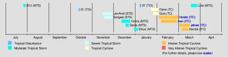 | Timeline of the 2007-08 South-West Indian Ocean cyclone season | |||||