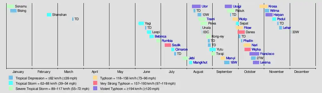 - ^ a b c d e f g h i RSMC Tokyo — Typhoon Center (October 23, 2013). Typhoon Usagi (RSMC Tropical Cyclone Best Track). Japan Meteorological Agency. Archived from the original on May 22, 2024. Retrieved October 26, 2013.