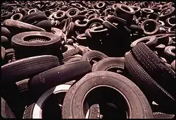 The region around the Mexico–United States border has failed to manage the stockpiles of waste tires. Some neglectful regions between the U.S. and Mexico border have given up on managing the stockpiles. The lack of waste tire management on the border creates health, fire, and environmental hazards in the area. In 2003, a program was set up and signed and included objectives to help reduce the stockpiles of waste tires in the region between the U.S. and Mexico border.[56] The program was the US-Mexico Border 2012 Program. This program had a goal to clean the three biggest waste tire stockpiles that were located in the region. In 2004, the US-Mexico Bi-national Commission expressed its strategies for dealing with the waste tire problem in the region, signing a letter in November 2004. The Bi-national program's target objective was "to develop and cooperate on an environmentally sustainable, comprehensive scrap tire management strategy." The US-Mexico Border 2012 Program is the third initiated bi-national agreement that aimed to protect the public health and environment that was in the shared region between the U.S. and Mexico border.[57] This program was initiated by the United States Environmental Protection Agency and Mexico's Secretaria de Medio Ambiente y Recursos Naturales. The updated US-Mexico Border 2020 Program accepts that one of the challenges it faces is the waste-tire management problem that has occurred over the past.[58]
