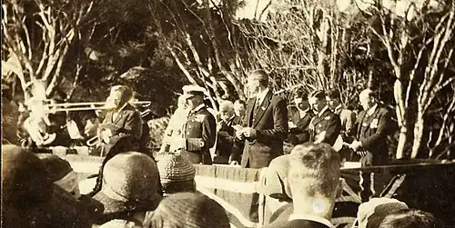 The devotional service was conducted by Reverend H. R. Jecks, vicar of Avondale, and Lieutenant-Colonel Angus MacDonald, minister at the New Lynn Presbyterian Church.[8] Music for the occasion was provided by the Temperance Guards' Band.[7]