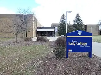 Toledo Early College (TEC) is a public high school located in Toledo, Ohio. Part of the Toledo school system, it was founded in 2005 as an Early college high school and provide students the opportunity to simultaneously pursue a high school diploma and earn college credits.[2] All students who apply to the school are considered, including students who are serviced through Individual Educational Plans. However, preference is given to students who are ethnic minorities, ESL students, students who qualify for free/reduced lunches, and students who are the first generation to attend college. Any student who lives in Northwest Ohio is encouraged to apply. Students represent many districts in the surrounding Toledo area. Beginning in the fall of 2017, Toledo Early College will open a junior high servicing 7th and 8th graders.[3] The school was ranked 17th in the state of Ohio in 2012[4] and during its second year of operation achieved an "Excellent" ranking.[5]