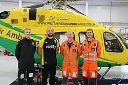 ![]() Dunn with Wiltshire Air Ambulance helicopter and crew | |||||||||||||||||||||||||||||||||||||