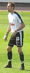 Starke made his Bayer Leverkusen debut on 25 August 2000, playing the whole game, in a 2–1 loss against St. Pauli in the first round of the DFB-Pokal, which was his only appearance for the club.[6] Although he spent most of the 2000–01 season playing for the reserve side, Starke was called up to the first team, appearing as an unused substitute for the rest of the season.[7][8][9] Despite not appearing in the squad for the UEFA Champions League Final against Real Madrid, Starke revealed that he was given a runner–up medal and said: "Maybe it was simplistic political reasons that I never got used."[10] For the rest of his career at Bayer Leverkusen, Starke continued to remain as a cover behind Hans-Jörg Butt, appearing as an unused substitute and at the same time, he appeared regularly for the Bayer Leverkusen II.[11][12][5]