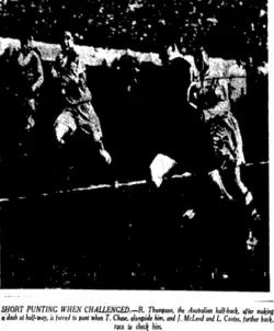 - ^ "Grand Kicking By Tommy Chase Brings 12 Points". Auckland Star, Volume LXXVI, Issue 105. 5 May 1945. p. 1. Retrieved 14 February 2025.