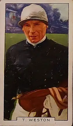 Thomas Weston (February 1902 – 1981), born Dewsbury, West Riding of Yorkshire, was a British horse racing jockey. One of the most successful jockeys of the inter-war years, he won eleven English Classics, eight as stable jockey for the Earl of Derby including two Derby Stakes winners in Sansovino and Hyperion. He was British flat racing Champion Jockey in 1926.