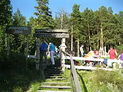 The Tomskaya Pisanitsa Museum is a museum reserve (a type of an open-air museum) located some 50 km north-west of Kemerovo on the right bank of the Tom River in Western Siberia, Russia. It is famous for its 280 petroglyphs dating from 4000–1000 BC. The exhibition also includes reconstructions of ancient dwellings as well as some later cultural artefacts pertaining to the Shors people.