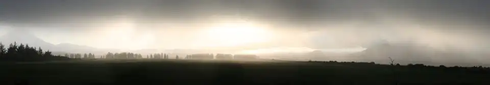 Like the whole of New Zealand, Tongariro National Park is situated in a temperate zone. The prevailing westerly winds gather water over the Tasman Sea. Apart from Mount Taranaki, the volcanoes of Tongariro National Park are the first significant elevations that these westerly winds encounter across the central North Island. Rain falls almost daily. The east–west rainfall differences are not as great as in the Southern Alps, because the three volcanoes do not belong to a greater mountain range, but there is still a noticeable rain shadow effect. The Rangipo desert on the eastern leeward side receives around 2,000 mm (79 in) of rainfall annually.[53] At Whakapapa Village (elevation 1119 m) the average annual rainfall is about 2,200 mm (87 in), in Ohakune (610 m) about 1,250 mm (49 in) and at higher altitudes, such as Iwikau Village (1770 m), about 4,900 mm (190 in). In winter there is snow to about 1500 m. Temperatures vary dramatically, even within one day. At Whakapapa, they can fall below freezing point all year round. The average temperature is 13 °C, with a maximum of 25 °C in summer and a minimum of −10 °C in winter. In some summers the summits of the three volcanoes are covered with snow; on top of Mount Ruapehu, snow fields can be found every summer and the summit is glaciated.[62]