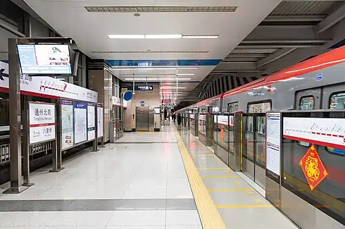 Tongzhou Beiyuan Station (Chinese: 通州北苑站; pinyin: Tōngzhōu Běiyuàn Zhàn) is a station on the Batong line (through operation to Line 1) of the Beijing Subway.[1]