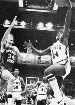 As a junior, he was the starting point guard on Poly's basketball team, which went 30–1 and won the Southern Section 4A title that year. The final was played for more than 10,000 fans at the Long Beach Arena, where Gwynn scored 10 points in the 69–50 victory over Buena of Ventura.[25] His teammates included Michael Wiley, who became a professional player in the National Basketball Association (NBA).[31] In Gwynn's senior year, Poly was 23–7, and again advanced to the championship round, despite finishing third in the Moore League. Their bid for a second straight title ended with a 57–50 loss to Pasadena.[25] Gwynn averaged 10.3 points and totaled 178 assists for the season, and he was named to the All-CIF Southern Section Second Team.[25][31][32] After the season, he switched to baseball, which was already well underway for the year. Despite his shortened season, he earned first-team All-Southern Section honors after batting .563. Poly's baseball team's struggles taught him to remain focused, continue executing, and stay productive.[25][26]