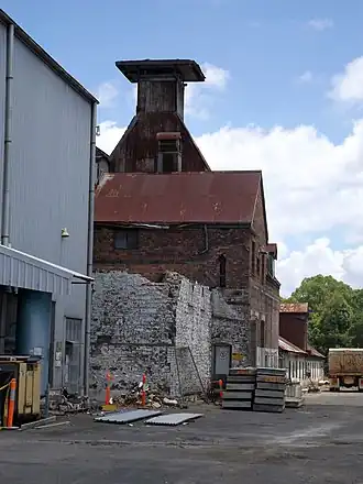 A rectilinear block of connected buildings consisting of two stone kilns, a malt dressing area, two brick kilns and a brick shed are remnants of earlier malting operations on the site. The present malting plant is housed in large sheds on the eastern and southern sides of the older buildings.[1]