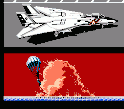 Compared to the previous Top Gun game, this features greatly improved graphics, in-game music (which appears in both the Japanese Famicom version and the arcade version of the first game), and an easier carrier landing sequence. A one or two player versus mode can dogfight.