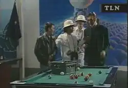 Đuro, the new member of the group, rose to prominence immediately with his broader acting range setting him apart from the rest of the self-taught performers.[25] Incorporating him into the group as a new piece, in addition to figuring out how to perform for the cameras for the first time, required adjustment compared to how Nadrealisti functioned on radio. However, since even their radio cast had always been fairly fluid from week to week, integrating a new member proved to be seamless as part of the group's generally frenzied, all-comers frame of mind. The arrival of Đuro also set the stage for a formation of a new dynamic within the group that would end up being much more pronounced in subsequent TLN television series: with original members Nele and Zenit on one side—framing the concept via providing initial ideas and connective tissue for the sketches—and "funnier and more talented performer" Đuro on the other side doing most of the heavy lifting on the acting front.[25]
