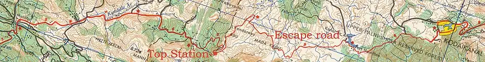 Top Station shown on map of Kodai-Munnar Escape road, 1955
