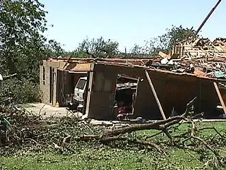 ![]() House damage from Northeast Oklahoma City tornado | |
