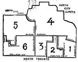 In 1914 the North Toronto district was abolished. The districts of Toronto East, Toronto North, Toronto South and Toronto West were replaced by