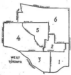 Merged into Toronto Southwest, Toronto Northwest and Parkdale ridings after 1911