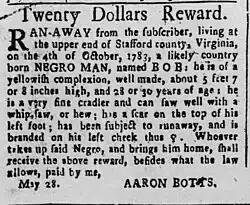 - ^ "Fifty Dollars Ranaway or Stolen". Natchez Gazette. July 24, 1819. p. 4. Retrieved 2024-08-17.