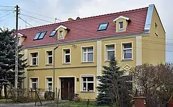 The house is located in the ancient village of Łęgnowo, now a district of Bydgoszcz. Łęgnowo was founded in 1603 by Olęders. This building is a remnant of this time, built in 1768 for the Mennonite community established in the neighbouring village of Otorowo. In the 18th and 19th centuries, the inhabitants of this area were mostly German settlers of the Evangelical faith. The edifice has been renovated in 2014–2015.[67]