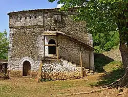 The exterior walls of a kulla could be up to one meter thick at ground level, gradually thinning toward the roof. Small, narrow openings, known as frëngji, were incorporated into the walls. These openings served a dual purpose: they allowed for limited natural light and ventilation while acting as defensive loopholes from which inhabitants could repel attacks.[21] The fortress-like design of kullas was a response to the frequent conflicts and blood feuds (gjakmarrja) that characterized life in the Balkans during the Ottoman period.[22]