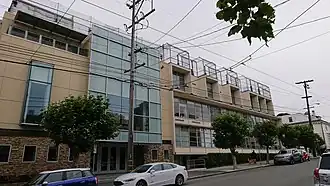 While renovations took place in the 2013–14 school year, the school temporarily leased the space in the Palace of Fine Arts vacated by the Exploratorium.[1][2]
