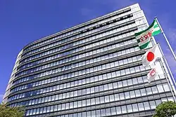 The main headquarters of Toyota is located in a 14-story building in Toyota. As of 2006 the head office has the "Toyopet" Toyota logo and the words "Toyota Motor". The Toyota Technical Center, a 14-story building, and the original Honsha plant, Toyota's first plant engaging in mass production and formerly named the Koromo plant, are adjacent to one another in a location near the headquarters. Vinod Jacob from The Hindu described the main headquarters building as "modest".[1] In 2013 company head Akio Toyoda reported that it had difficulties retaining foreign employees at the headquarters due to the lack of amenities in Toyota.[13]