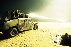 There are fireworks manuals from the 14th century specifying a way to make "flaming cannonballs," with pitch, gunpowder, a cloth/cordage cover, and finally smearing them with lard and tallow.[1] These were however not available for small arms, and before the development of tracers, gunners still relied on seeing their bullets' impact to adjust their aim. However, these were not always visible, especially as the effective range of ammunition increased dramatically during the later half of the 19th century, meaning the bullets could impact a mile or more away in long-range area fire. In the early 20th century, ammunition designers developed "spotlight" bullets, which would create a flash or smoke puff on impact to increase their visibility. However, these projectiles were deemed in violation of the Hague Conventions' prohibition of "exploding bullets."[2] This strategy was also useless when firing at aircraft, as there was nothing for the projectiles to hit if they missed the target. Designers also developed bullets that would trail white smoke. However, these designs required an excessive amount of mass loss to generate a satisfactory trail. The loss of mass en route to the target severely affected the bullet's ballistics.