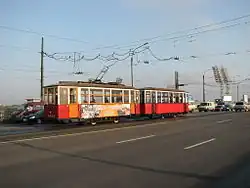 MS-1 tram at Dobrolyubova prospect in Saint Petersburg.