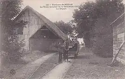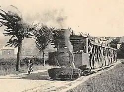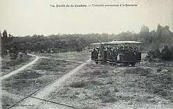 The first metre-gauge Decauville railcars (Automotrice) were procured around 1903.[4] From 1924, six petrol-powered Campagne railcars from the 1910s were used on the 600 mm forest railway lines, both of which ran on the Groupe Laborie narrow-gauge lines in 1914 after the outbreak of the First World War and were finally used as light railcars on the metre-gauge lines from Cormeilles to Glos and Montfort-sur-Risle in the Eure department around 1933.[5][Note 2][6]
