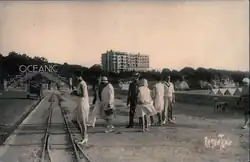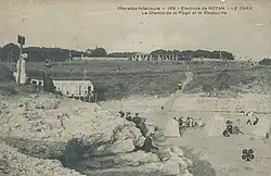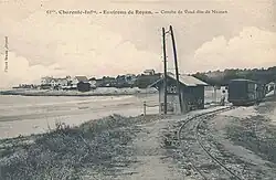 4. ^ The Maison Forestière de la Pointe Espagnole was, according to contradictory information, probably either identical with the Maison Forestière Roître des Bassets or with the Maison Forestière les Roseaux. In total, there were the following twelve forester's lodges to the right and left of the forest railway from north to south: 1. La Palmyre, 2. Bonne-Anse, 3. Le Requin (demolished), 4. La Grande Courbe (washed away by the sea), 5. La Bouverie, 6. Le Pavillon, 7. Les Brisquettes 8. Roître des Bassets (washed away by the sea), 9. La Passe Blanche, 10. Nègrevaux, 11. Les Clones, 12. Les Roseaux (demolished).