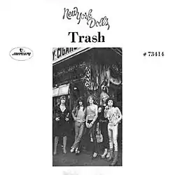 "Trash" is the debut single by the American rock band New York Dolls. It was recorded for their 1973 self-titled album and released as a double A-side with the song "Personality Crisis" in July 1973. "Trash" did not chart upon its release, but has since been hailed by music critics as an anthemic glam rock and proto-punk song. In 2009, the band recorded a reggae-styled remake of the song for their album Cause I Sez So.[1]