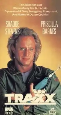 Traxx is a 1988 action comedy and adventure comedy film that was directed by Jerome Gary.[3][4] It was released on August 17, 1988 and starred Shadoe Stevens as a mercenary turned cookie maker.[5][6] The film had a budget of 6.5 million dollars and was initially intended to have a theatrical release, but was instead released direct to video.[2] Traxx was later screened in 2012 at the Hollywood Theatre in Portland, Oregon.[7]
