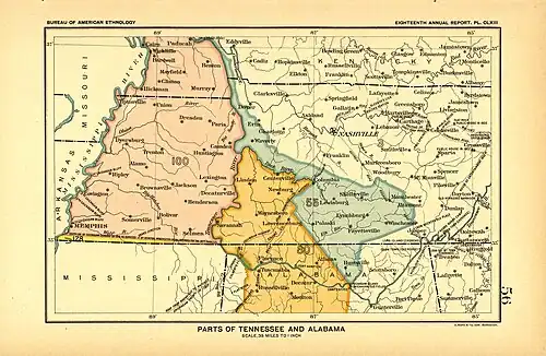 The Chickasaw land cession encompassed parts of present-day Kentucky, central Tennessee, and northern Alabama,[1] establishing the Natchez Trace as the boundary line between Chickasaw Country and the United States.[2] Signatories included James Robertson, Silas Dinsmoor, Chenubbee Mingo, George Colbert, O'Koy, Tiphu Mashtubbee, Choomubbee, Mingo Mattaha, E. Mattaha Meko, William McGillivray, Tisshoo Hooluhta, and Levi Colbert.[2] The treaty secretary was Thomas A. Claiborne, a brother of William C. C. Claiborne. A celebration ball was held on July 27, 1805, for the commissioners of the treaty and other dignitaries in the region that included former U.S. Vice President Aaron Burr.[2] The treaty is numbered 55 in Charles C. Royce's Indian Land Cessions in the United States.[3]