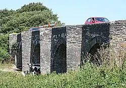 The most distinct feature at Trewornan is Trewornan Bridge which spans the River Amble. The bridge was built in the 18th century and is Grade 2 listed.[5] This bridge is well known to drivers on the B3314 as in 2022 it is still single file and is protected by traffic lights. In May 2022 the bridge was struck by a vehicle which caused significant damage to the parapet and the B3314 was closed. Repairs were predicted to take several weeks and local bus services were affected.[6][7]
