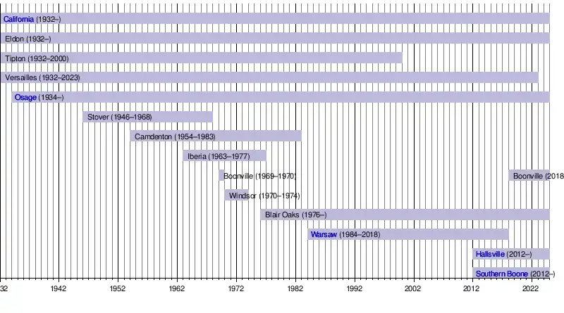 - ^ "Blair Oaks to join Tri-County League" Eldon Advertiser Eldon, Missouri 04 Dec 1975 p. 7