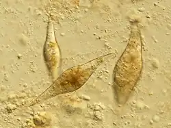 - ^ Mikes L, Zìdková L, Kasný M, Dvorák J, Horák P (June 2005). "In vitro stimulation of penetration gland emptying by Trichobilharzia szidati and T. regenti (Schistosomatidae) cercariae. Quantitative collection and partial characterization of the products". Parasitology Research. 96 (4): 230–41. doi:10.1007/s00436-005-1347-1. PMID 15868186. S2CID 765928.