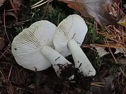 1. ^ Ovebro CL. (1989). "Tricholoma, subgenus Tricholoma, section Albidogrisea: North American species found principally in the Great Lakes region". Canadian Journal of Botany. 67 (11): 3134–52. doi:10.1139/b89-393.