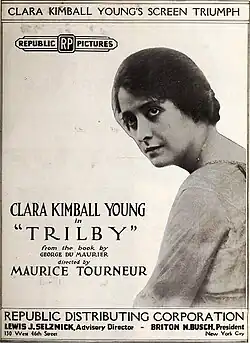 Trilby is a 1915 American silent drama film directed by Maurice Tourneur and starring Wilton Lackaye, Clara Kimball Young, and Paul McAllister.[1] It is an adaptation of the 1894 novel Trilby by George du Maurier. The film's sets were designed by art director Ben Carré.