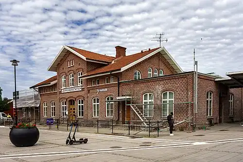 Trollhättan railway station is located in the city of Trollhättan, Sweden, along the Norway/Vänern Line. The station building in brick was built for the original opening of the railway in 1877.[5] There is an adjacent bus station built just before 2000.[2] The station is located around 800 metres (2,600 ft) from the traditional midpoint of the city.