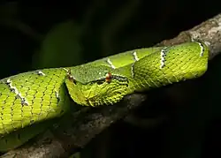 5. ^ Tan, Choo Hock; Tan, Kae Yi; Yap, Michelle Khai Khun; Tan, Nget Hong (2017-02-27). "Venomics of Tropidolaemus wagleri, the sexually dimorphic temple pit viper: Unveiling a deeply conserved atypical toxin arsenal". Scientific Reports. 7 (1): 43237. Bibcode:2017NatSR...743237T. doi:10.1038/srep43237. ISSN 2045-2322. PMC 5327433. PMID 28240232.