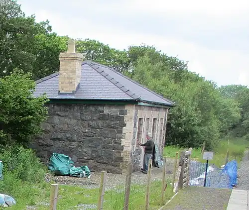 This section of the WHR was restored in 2000 and work began in earnest 2009 on restoration of the station under the leadership of by the late John Keylock and driven by the determination of a small band of volunteers from the Welsh Highland Heritage Group. The first part, reconstruction of a platform, was completed in Spring 2010, but the only train to stop there in 2010 was a single "Sponsors Special". In 2011 with the commencement of the main operating season, it became a timetabled request stop. Work on the building continued and was completed in 2014.
