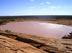 The Yatta Plateau, the world's longest lava flow, runs along the western boundary of the park above the Athi-Galana-Sabaki River. Its 290 km (180 mi) length was formed by lava from Ol Donyo Sabuk Mountain.[3] The Mudanda Rock is a 1.6 km (0.99 mi) inselberg of stratified rock that acts as a water catchment that supplies a natural dam below. It offers an excellent vantage point for the hundreds of elephants and other wildlife that come to drink during the dry season. Lugard Falls, named after Frederick Lugard, is a series of white water rapids on the Athi-Galana-Sabaki River. Aruba Dam was built in 1952 across the Voi River. The reservoir created by the dam attracts many animals and water birds.