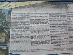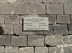 EU-sponsored information plaque with building description headed by wrong name at the 5th Century Church "Spitakavor" (Whitish)