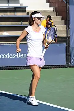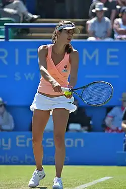 Tsvetana Kirilova Pironkova (Bulgarian: Цветана Кирилова Пиронкова [tsvɛˈtanɐ piroŋˈkɔvɐ]; born 13 September 1987) is a Bulgarian former tennis player. Considered to be one of the best grass court players of her generation, she has been noted for her "cerebral" skills on the surface, reaching the semifinals at the Wimbledon Championships.[2][3] Pironkova also found success playing on the quick hardcourts throughout her career, winning a title in Sydney and reaching the quarterfinals of the US Open.[4][5]